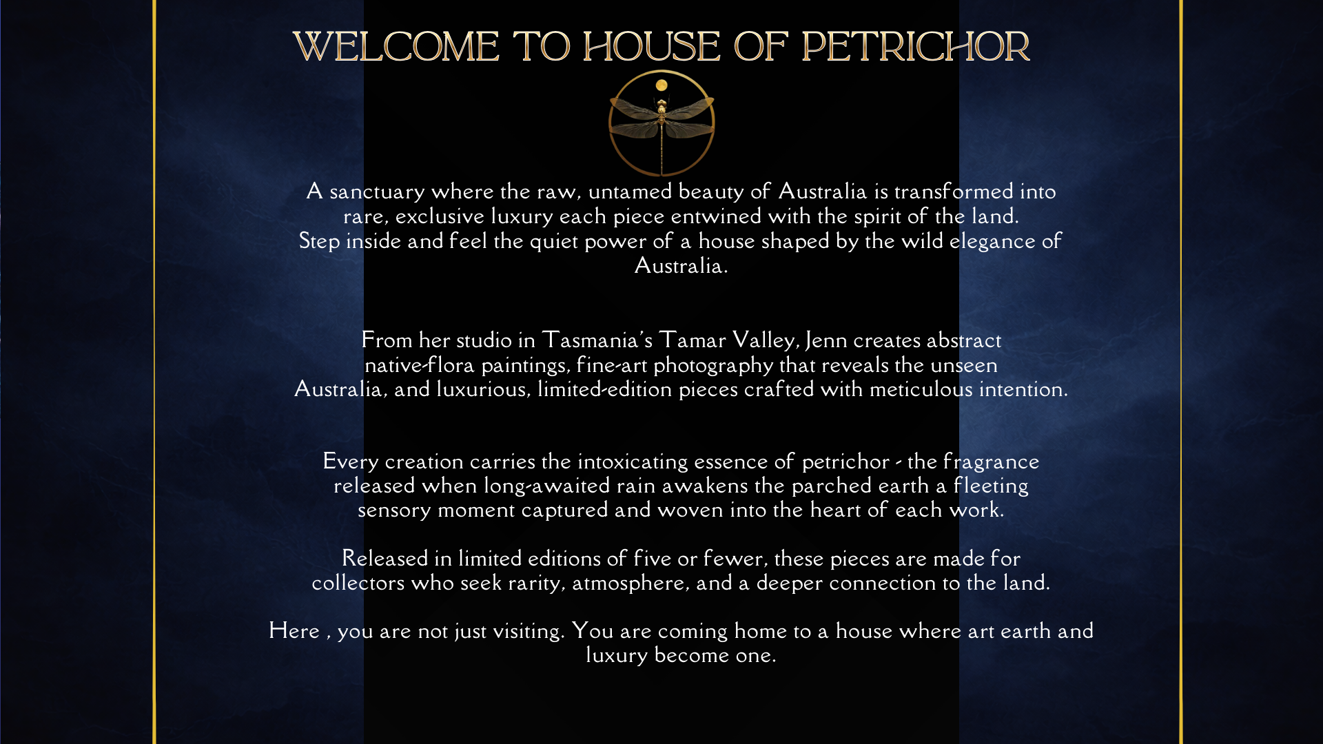 Collectors may begin with one , curate their collection over time or be the one in five to secure the full five piece suite- each selection is welcomed within the House of Petrichor